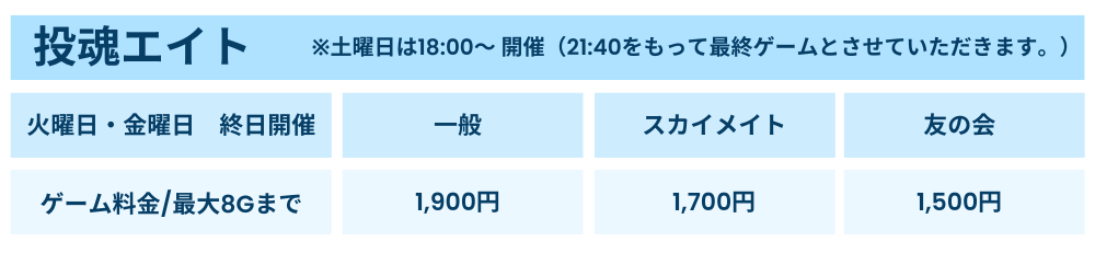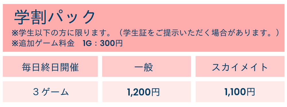 ◎レーン状況によりレーン数、ゲーム数などを制限させていただく場合がございます。