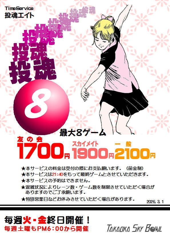 TOPICS / おしらせ 2023.07.15 ホームページをリニューアルしました PAYMENT / お支払い 下記の決済がご利用いただけます。※団体様はご利用いただけません INFORMATION / 高岡スカイボウルの情報 INFORMATION / 情報 所在地 富山県氷見市上田子124番地 海老坂ガーデンプラネット3F 駐車場 250台 営業時間 平 日:13:00~22:00土・祝:10:00~22:00日曜日:10:00~20:00 休業日 木曜日 電話番号 0766-24-5050 FAX 0766-24-3533